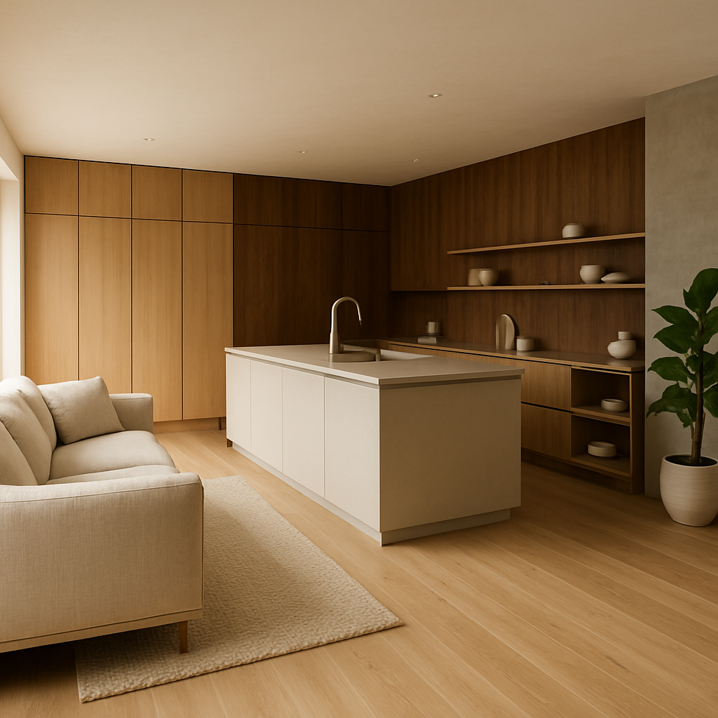 Ein Beispiel: In einer modernen Wohnküche kann eine Eichendiele die Basis bilden, während Nussbaum-Akzente an offenen Regalen Wärme und Eleganz hinzufügen. Die Kombination fühlt sich heimisch an, bleibt aber reduziert genug, um zeitlos zu wirken.